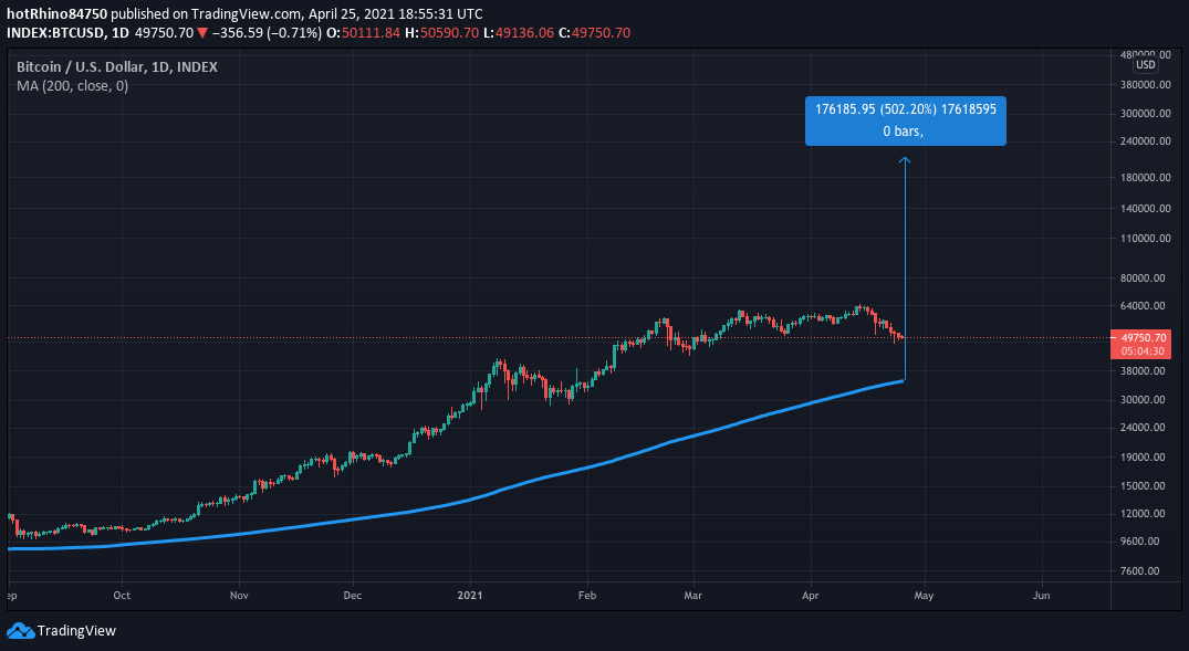Now, the question arises what is the maximum extent to which Bitcoin may correct in 2021? According to me, the bottom level that Bitcoin may touch is close to the 200 Day Moving Average which is currently at $34,950.